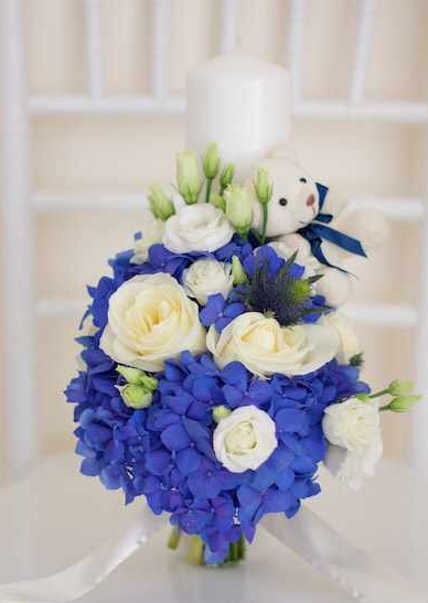 Compus din Hortensia, trandafiri si lisiantus. Cu jucaria clientului